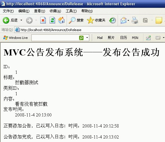 我们继续完善“MVC公告发布系统”,这次,我们的需求是对公告发布功能添加日志记录能力,