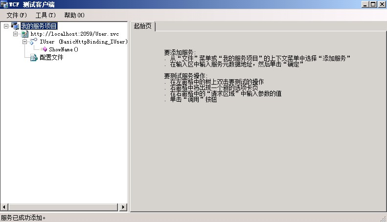 此时我们的第一个WCF服务程序就建立好了,将User.svc“设为起始页”,然后F5运行一下试试,